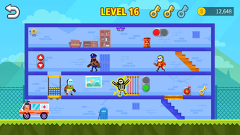 죄수들의 탈출을 돕기 위해 화면 상의 다양한 소품과 상호 작용하여 경비원을 제압하거나 피할 수 있습니다. 한 번의 잘못된 움직임이 실패로 이어질 수 있으며, 그 결과로 죄수들이 다시 붙잡힐 수 있습니다. 두뇌를 쓰고 성공적인 탈출을 확실히 하여 교도소 구석에 기다리는 차량으로 이동하세요.